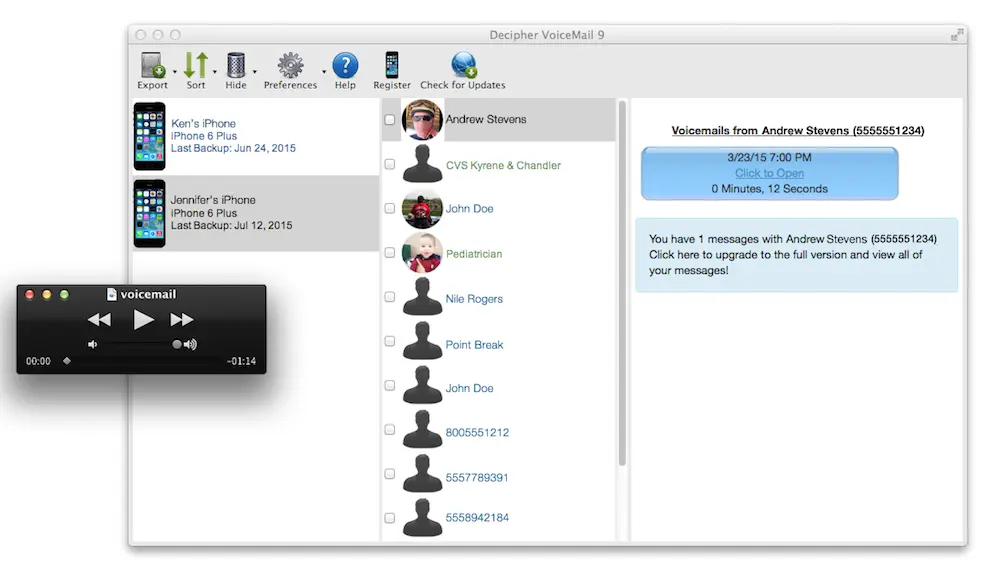 - Make sure you have made a recent backup of your iPhone. After backing up your iOS device, Decipher VoiceMail will then read-in your most recent voicemails and you can transfer the voicemails them to your computer. Here is how to back up your iPhone via iTunes.