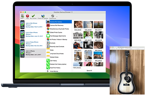 View and save photos, notes, contacts, voice memos, call history, and other files from your iPhone backup.