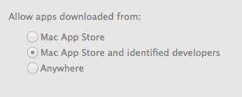 - Set your "Allow apps downloaded from" is set to Mac App Store and identified developers.